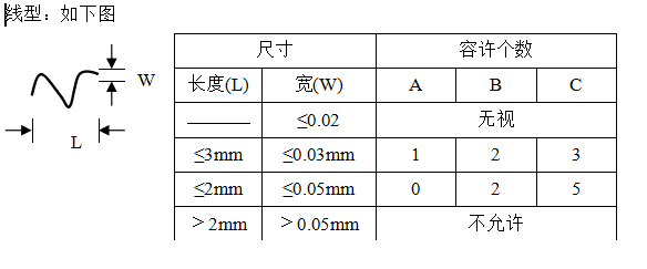標(biāo)準(zhǔn)中出現(xiàn)的A,B,C為產(chǎn)品的檢驗(yàn)等級,A級最嚴(yán),B級次之,C級較松。不同產(chǎn)品適用的產(chǎn)品檢驗(yàn)等級請查閱技術(shù)部《產(chǎn)品檢驗(yàn)規(guī)格書》。